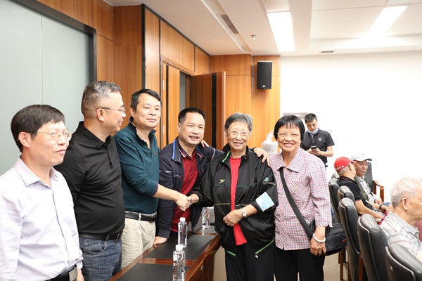 參觀完五象新區(qū),退休干部職工一行回到我院辦公樓,院領(lǐng)導(dǎo)班子主持召開退休職工座談會,與退休老同志們歡聚一堂,共慶重陽佳節(jié),一些久未謀面的老朋友紛紛噓寒問暖、握手擁抱、或是合影留念,每個老職工的臉上都洋溢著幸福的笑容。