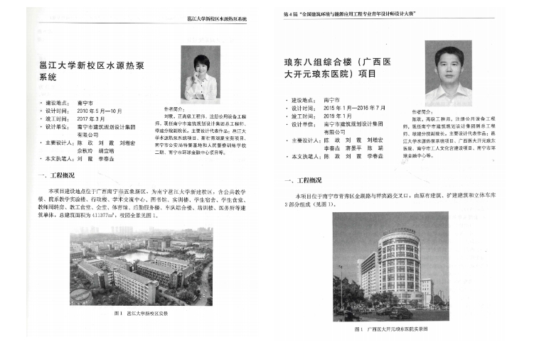 其中,集團綠色建筑設(shè)計研究分院李春垚入選第2批中國勘察設(shè)計協(xié)會建筑環(huán)境與能源應(yīng)用專業(yè)青年人才庫人員名單。集團設(shè)計項目“邕江大學(xué)新校區(qū)水源熱泵系統(tǒng)”和“瑯東八組綜合樓(廣西醫(yī)大開元瑯東醫(yī)院)”獲《全國勘察設(shè)計建筑環(huán)境與能源應(yīng)用工程專業(yè)優(yōu)秀工程3》收錄并出版發(fā)行。