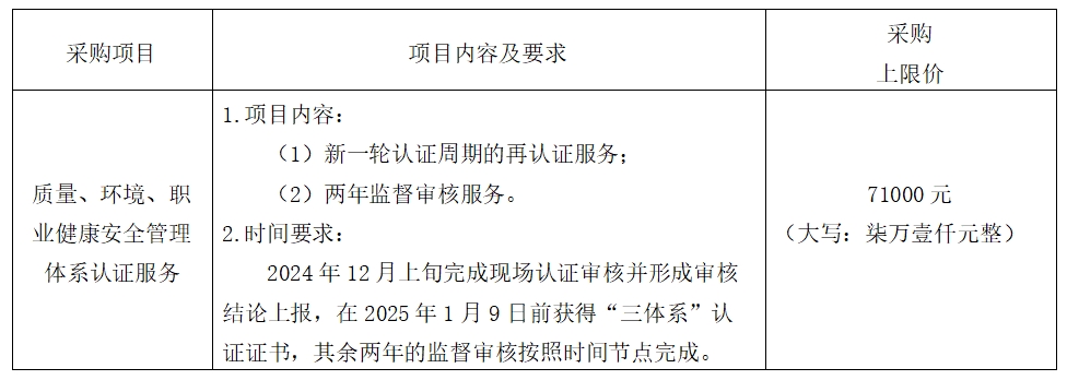 為進(jìn)一步提升企業(yè)管理水平,確保企業(yè)在質(zhì)量、環(huán)境和職業(yè)健康安全方面符合相關(guān)標(biāo)準(zhǔn)要求,南寧市建筑規(guī)劃設(shè)計(jì)集團(tuán)有限公司決定就本公司質(zhì)量、環(huán)境、職業(yè)健康安全管理體系認(rèn)證服務(wù)項(xiàng)目擬采用公開(kāi)詢(xún)比方式擇優(yōu)選定供應(yīng)商,歡迎符合資格條件的供應(yīng)商前來(lái)參加。